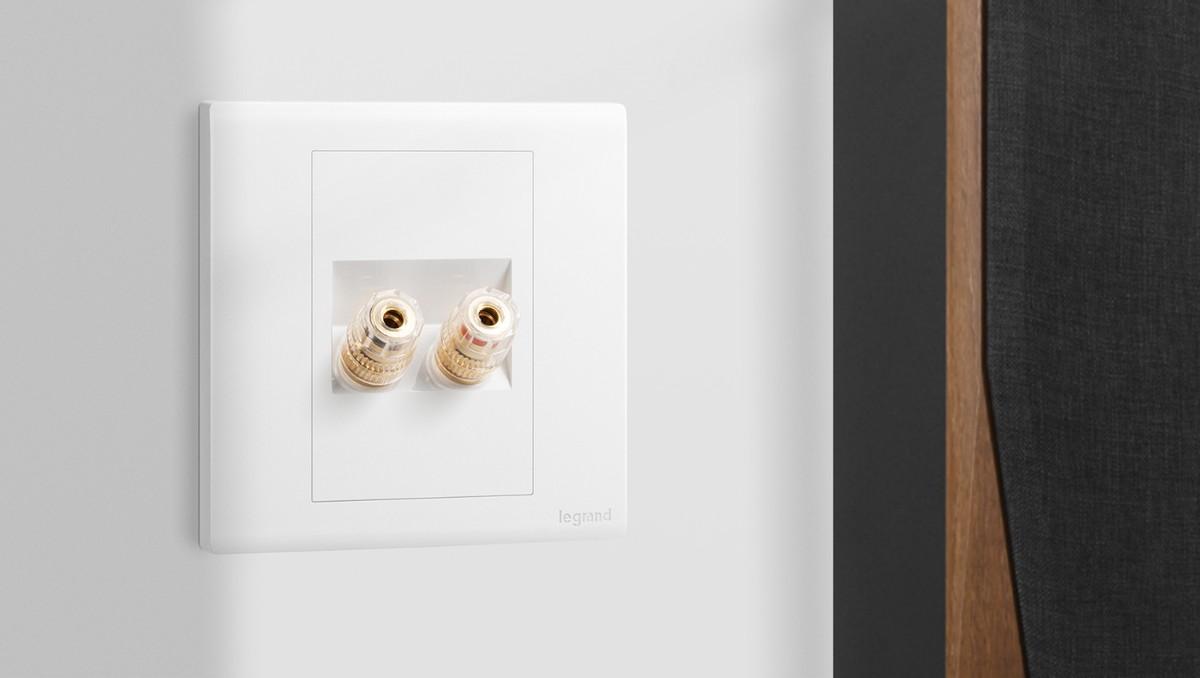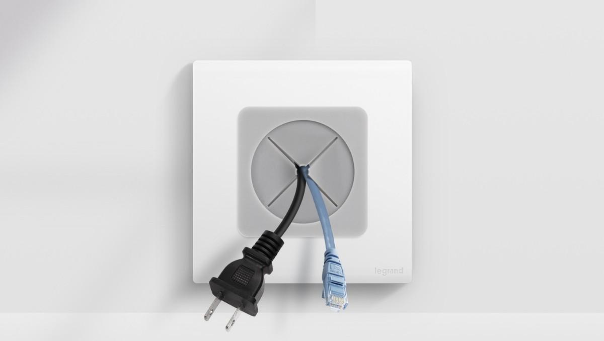 建议电视墙选装出线孔面板,隐藏式线缆管理,使用方便,同时让电视墙区域更整洁美观。