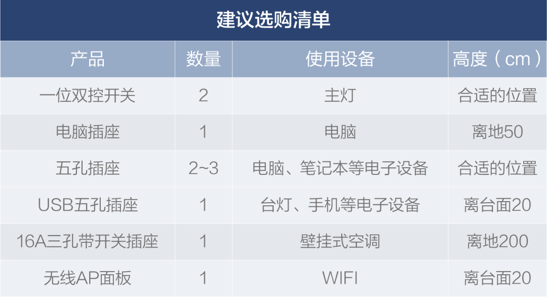 可以集中在书桌上方设2~3个五孔插座和无线个是USB五孔插座,用于台灯、手机和笔记本。