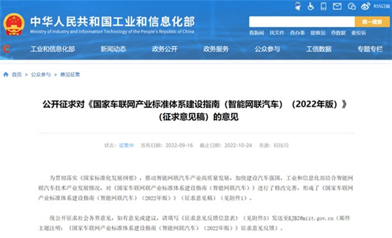 中国经济网9月20日讯(记者 郭跃)昨日,工业和信息化部科技司公开征求对《国家车联网产业标准体系建设指南(智能网联汽车)(2022年版)》(征求意见稿)的意见。其中提出,到2025年,制修订100项以上涵盖组合驾驶辅助、自动驾驶关键系统、网联基础功能及操作系统、高性能计算芯片及数据应用等方面的智能网联汽车相关标准;到2030年,制修订130项以上智能网联汽车相关标准并建立实施效果评估和动态完善机制,全面形成能够支撑实现单车智能和网联赋能协同发展的智能网联汽车标准体系。