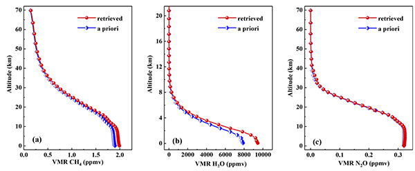 在中红外波段中,由于缺乏成熟的光纤元件或光波导,通常使用传统的机械斩波器来实现太阳光调制,系统难以做到小型化。团队谈图副研究员和薛正跃博士生设计了一套基于MEMS调制器的双通道中红外激光外差光谱仪,利用MEMS振镜替代传统机械斩波器,同时实现对两台位于甲烷CH4、水H2O和一氧化二氮N2O吸收线微米的带间级联激光器(ICL)与太阳光拍频,实验测量两个通道的激光外差光谱,通过反演计算获得甲烷CH4、水H2O和一氧化二氮N2O的体积混合比分别为~1.906ppm、~3069ppm和~338ppb。本次报道的基于MEMS调制器双通道MIR-LHR具有重要应用前景,为进一步研发用于大气多组分气体遥感探测的便携式高光谱分辨率激光外差光谱仪器奠定基础。
