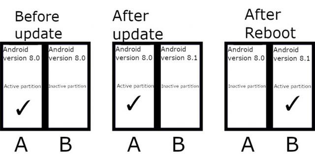 A / B 分区是 Android 7。0 中首次引入的机制,系统同时存在于 A 分区和 B 分区。当 A 分区更新系统时,用户可继续使用 B 分区,之后再重启到 A 分区,从而省下了系统更新的时间,因此也叫无缝更新。此外,当 A 分区的系统文件损坏后,用户还可以切换到 B 分区继续使用,降低了手机无法使用的概率。