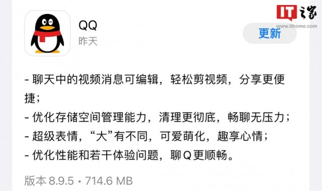 8 月 18 日消息,今天腾讯 QQ 发布了 iOS 版 8。9。5 更新。带来了新功能和优化等。其中包括聊天中的视频消息可编辑,轻松剪视频;优化存储空间管理能力,清理更彻底等等。