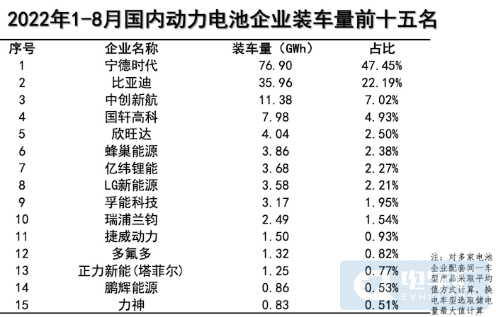今年1-8月,我国动力电池累计装车量162.1GWh, 累计同比增长112.3%。