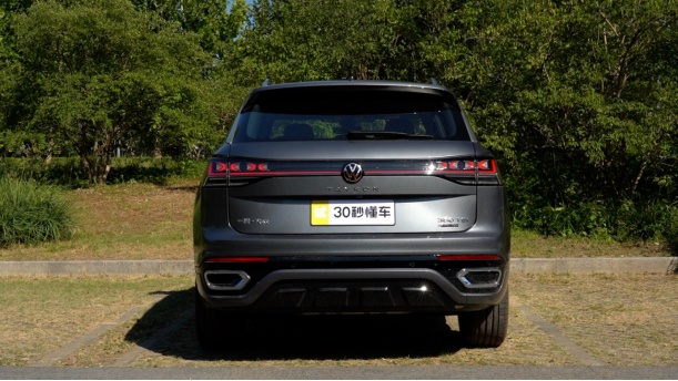 车辆尾部,采用光遇贯穿式 LED 尾灯设计,视觉宽度得到拉伸。下方后保险杠也增加了护板,尾部造型更加结实硬朗。我更喜欢这台车尾门的设计,采用电动尾门,可通过感应开启且高度可调,打开后后备箱容积很大,非常实用。