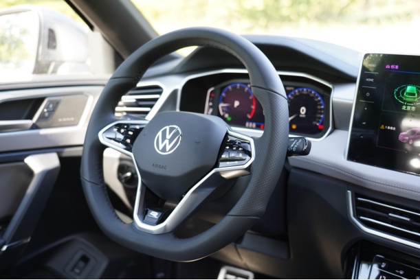 顶配车型提供了Harman/Kardon音响,音质方面的确相比老款车型更加立体,环绕的效果更好。方向盘配有电加热功能,方向盘上的触控按键是提供震动反馈的,减少误操作可能性。