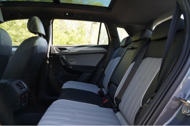 全新探岳的后排空间表现出色,全景天窗使后排视野更加开阔。后排座椅支持前后18cm可调、靠背角度可调。配置方面,后排出风口并配有独立温区调节面板,面板下方有两个USB充电口,使用起来更加方便。