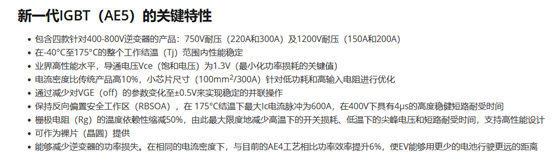 与当前一代AE4产品相比,用于IGBT的硅基AE5工艺可将功率损耗降低10%,这一节能技术将有助于 EV开发人员节省电池电量并增加行驶里程。新产品在保持高稳健性的同时,体积也缩小了约10%。这款全新瑞萨器件通过在低功率损耗和高稳健性的权衡中取得最佳平衡,实现了IGBT行业的性能水平。这款IGBT最大限度地减少IGBT间的参数变化,并在IGBT并联运行时带来稳定性,从而显著改善模块的性能与安全性。这些特性为工程师提供了更大灵活性,帮助其设计出能够获得高性能的小型逆变器。