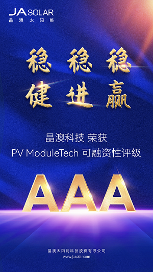 9月13日,PV ModuleTech发布2022年第三季度组件制造商可融资性评级,在出货、产能布局、技术布局、财务表现等关键指标中,晶澳科技呈现出领先的制造优势、稳健的财务状况等优势,获得最高AAA评级。
