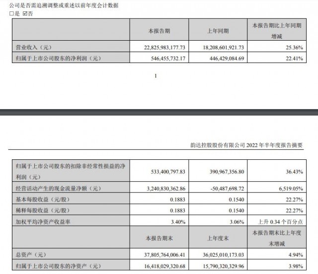 8月31日消息,韵达股份发布2022年半年度报告,上半年实现营收228。26亿元,同比增长25。36%;净利润5。46亿元,同比增长22。41%。