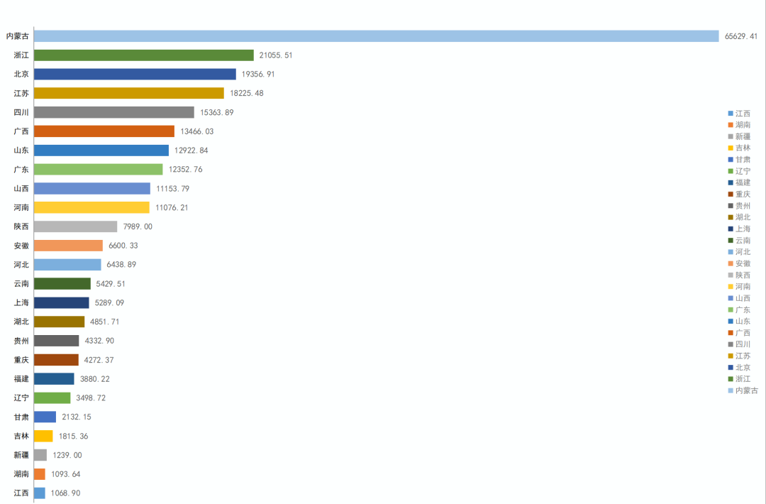 项目所在地区中标总金额前五名依次为:内蒙古(中标总额为65629.41万元)、浙江(中标总金额21055.51万元)、北京(中标总金额19356.91万元)、江苏(中标总金额18225.48万元)、四川(中标总金额15363.89万元)。