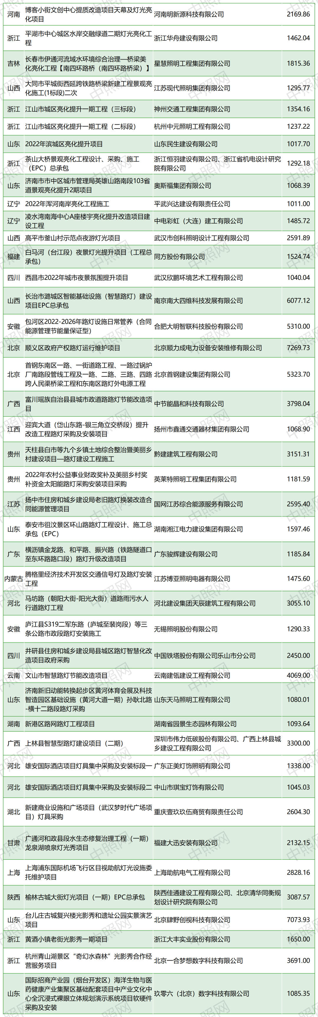 据不完全统计,八月招标金额在一千万以上的工程有87项,分布全国22个省,中标总金额高达260534.62万元,中标企业共92家。项目涵盖照明、亮化、夜景、灯光秀、夜游、智慧灯杆、路灯、灯具、泛光、光影秀、沉浸式、裸眼等关键词。