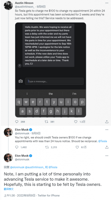 马斯克上周在 Twitter 上说,他已经将“推进特斯拉服务,使其变得更棒”作为首要目标,以此得克萨斯州一位抱怨等待提车已经等了一个月的准车主。