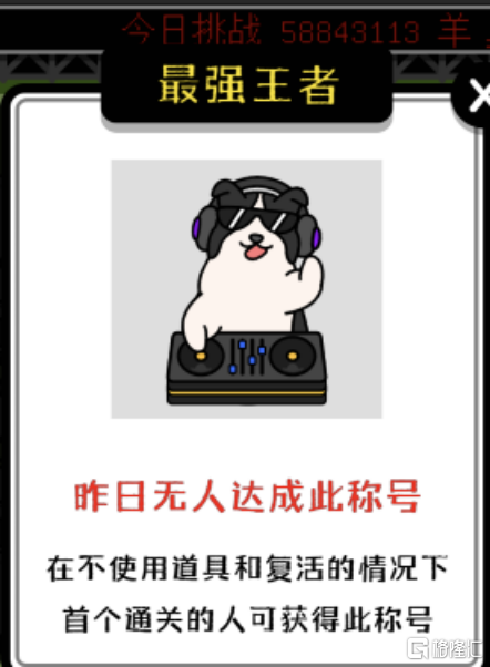另一个是个人排名。最先进羊群的,将被赋予“全国领头羊”的称号;通关用时最短的,则为“秋名山羊”。不过最猛的,还属“最强王者”,指不使用道具就通关的大神。