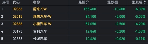 财联社9月19日讯(编辑 马轶杰)今日三家在港股上市的造车新势力集体大幅下行,截至收盘,理想汽车跌5。05%,小鹏汽车-W(09868。HK)跌4。20%,蔚来-SW(09866。HK)跌6。39%。