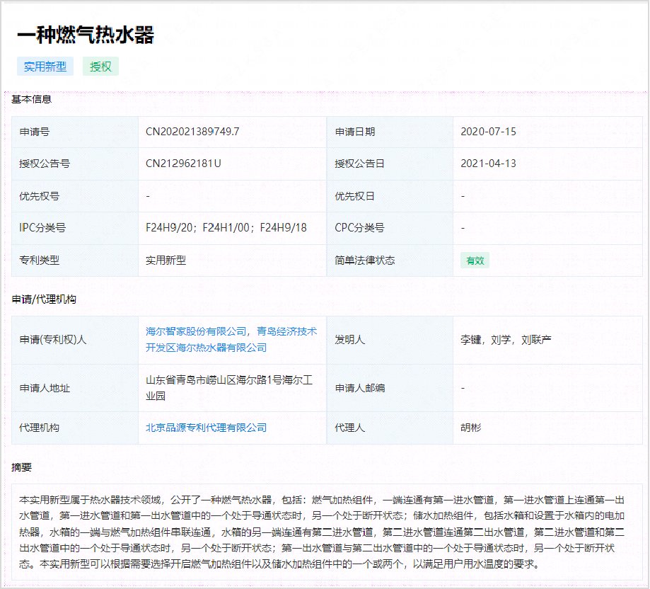 唯有科技突破,才能消灭烦恼。在海尔公开的一份实用新型专利授权说明书中,一种结合了电与燃气驱动双重优点的燃电混动热水器技术应势而生,专利授权公告号为CN 212962181 U。
