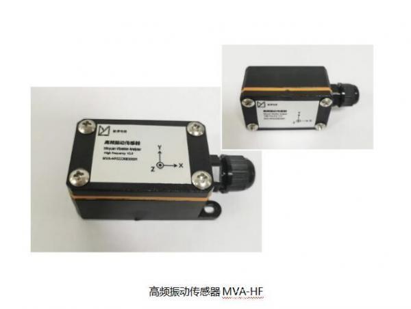 高频振动传感器MVA-HF(Minyuan Vibration Analyzer-High Frequency)内置温度、振动传感数字芯片、电源管理芯片及智能微处理器,可连续监测设备在三维空间的振动状态,数字输出三维振动加速度、幅度、频率、温度等信息。