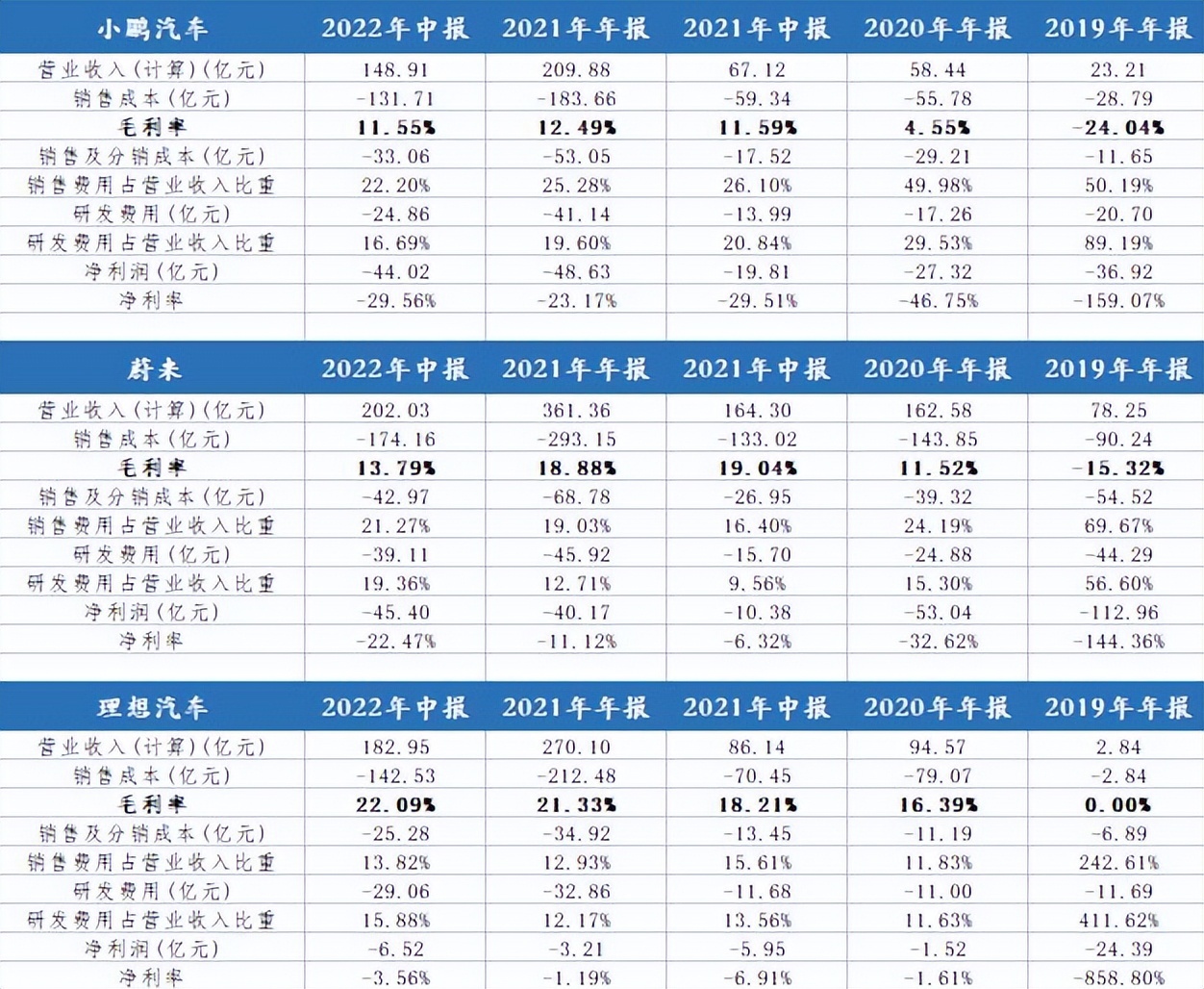 仅以今年上半年为例,即便蔚来的毛利率出现大幅下滑,仅为13。79%,依旧比小鹏的11。55%高出2个百分点,而同样早已进入高端车领域的理想,其毛利率反而不断增高,从2020年的16。39%增至最新的22。09%,几乎是小鹏的2倍。