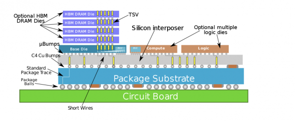 3D封装和2.5D封装的主要区别在于:2.5D封装是在Interposer上进行布线D封装是直接在芯片上打孔和布线,电气连接上下层芯片。